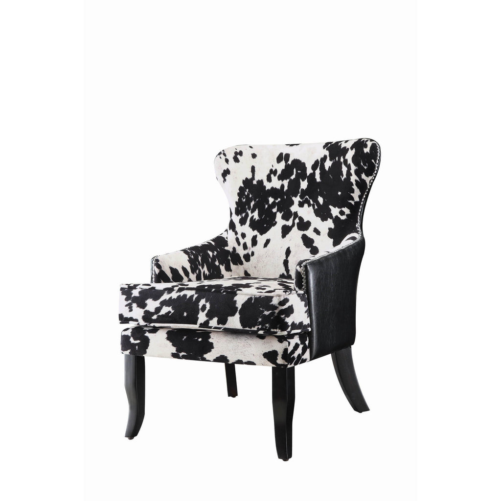 Reach for a cutting edge aesthetic. Your mixed motif room deserves a contemporary look with a hint of romantic charm. Built to impress, this accent chair delivers a special touch as well as comfortable seating. A curvy frame seals the romantic, inspiring mood, and an abstract black and white print on microfiber and leatherette upholstery defines its energetic look. Espresso finish legs with gentle curves round out an exceptional design package.