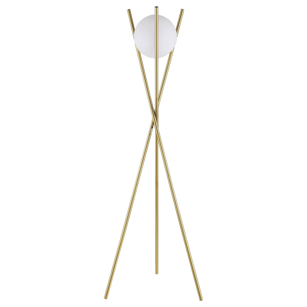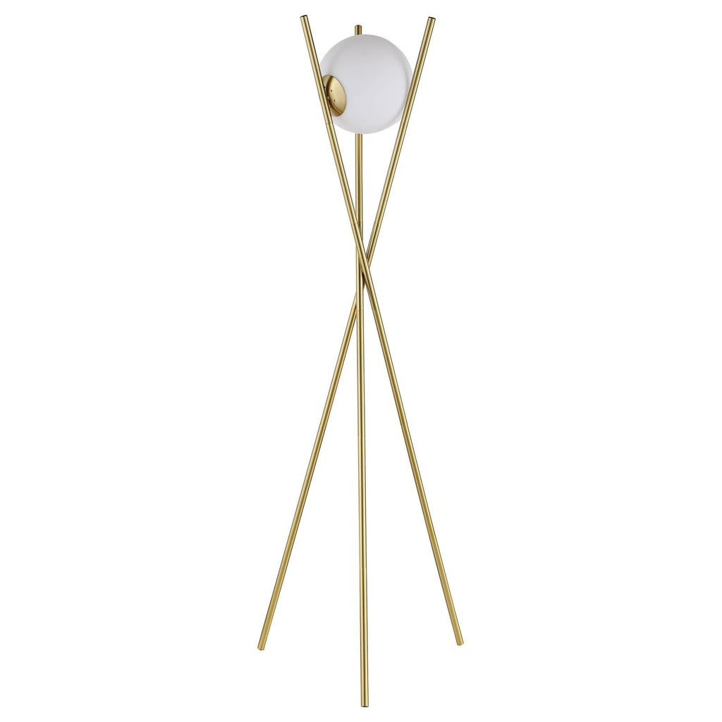 Downscaled style delivers artisan charm in a lamp with a special look that elevates your bedroom or living area. The Yamileth floor lamp makes more out of less, blending gold finished metal with a chic glass shade. A wispy geometric silhouette forms from crossed rods that end in a tripod base. A round frosted white glass shade filters ambient lighting beautifully, creating a glow when on and a delicate element when off. Turn this lamp on and off from a long cable mounted foot switch.