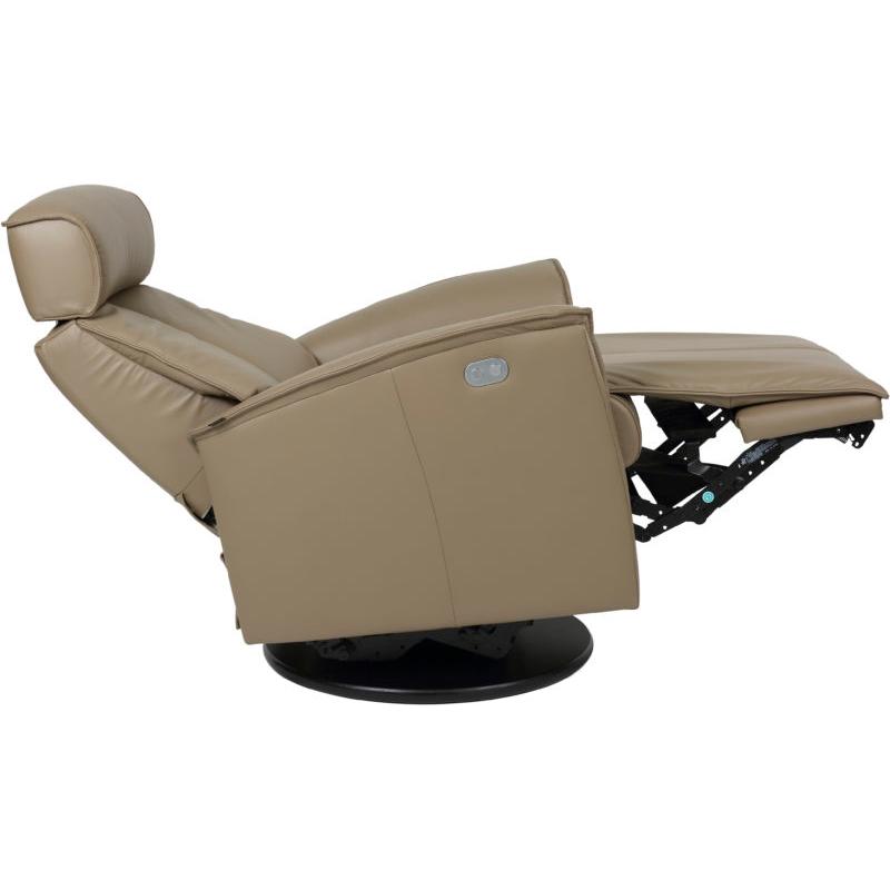 The Fjords Venice swing relaxer with a height-adjustable headrest and manual release headrest angle makes the seating experience ergonomic and gives your lower back correct support. It features a top grain leather upholstery, a power-reclining mechanism, and a black stain base which is standard on this model.