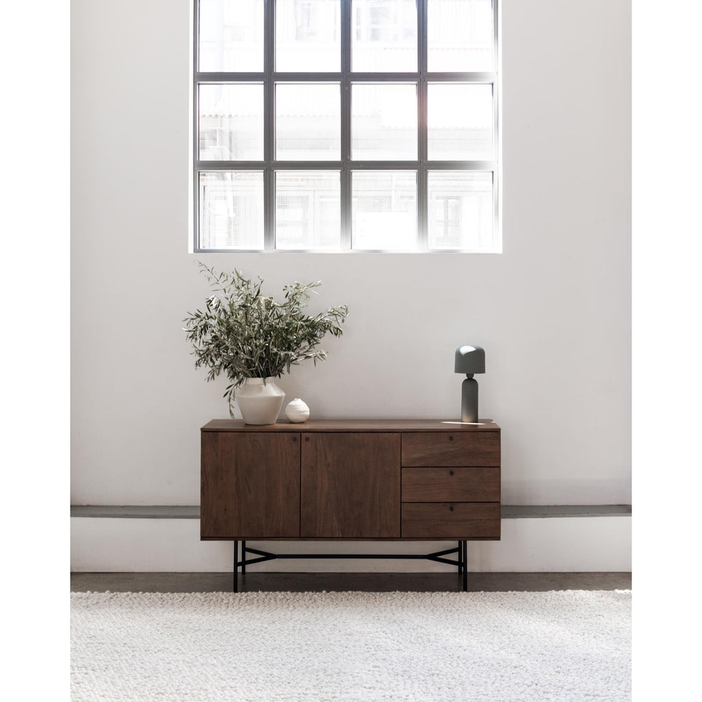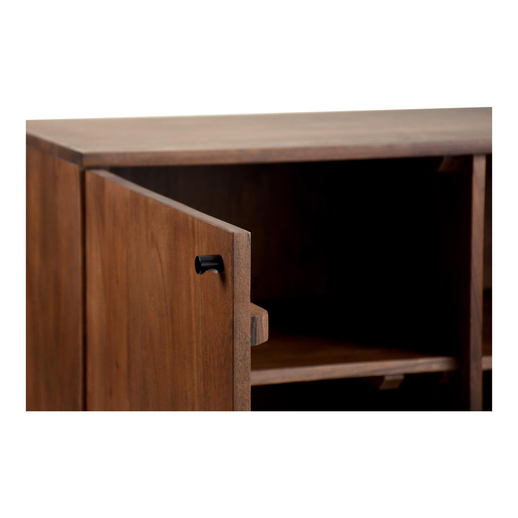 It’s all about the details with the Beck sideboard. This buffet’s timeless modern design is beautifully accentuated with acacia wood construction and industrial-inspired legs. Its drawers glide open on side-mount ball bearings, ensuring smooth and quiet access to your treasures. What’s more, the interiors of this credenza’s drawers are all lined in exquisite felt. A black-powdered coat on the piece’s metal handles is the finishing touch. With two doors and three drawers, the Beck is the perfect storage solution for your dining room.