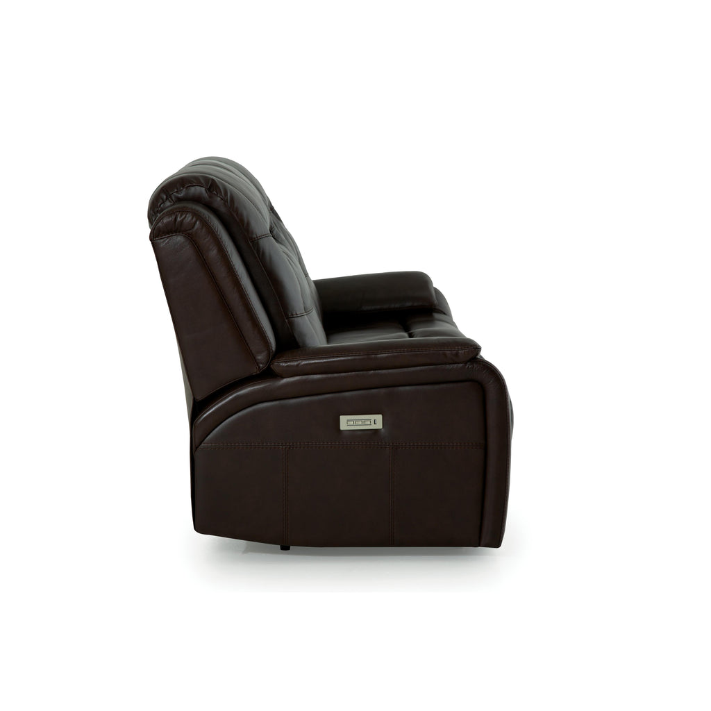 Power recline with a button switch featuring integrated USB charging and LED lighting, finished in an attractive brushed metal