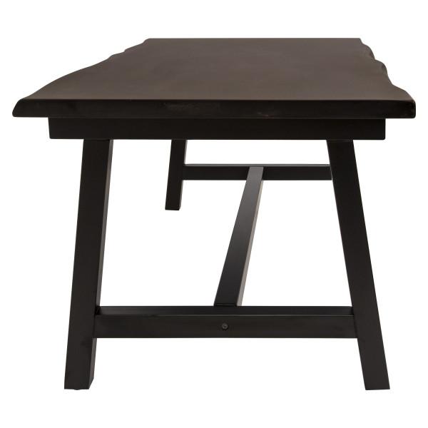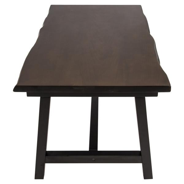 The Trestle Coffee Table combines a balance of farmhouse rustic and modern appeal, for an adaptable piece of decor. Made from solid New Zealand Pine, the sustainable wood is smoothly sanded for a clean, sleek surface. The design features faux live edges and knockdown construction, which provides convenient assembly and breakdown of the table. The tabletop is finished with a dark stain and clear coating. The black legs are solid wood. Adaptability is a key feature of this table, so it will suit any home in need of an earthy, yet a cleanly constructed piece of decor. The design's reliability makes it an ideal coffee table for your living room.